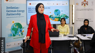On August 21 and September 25, 2025, the third and fourth SHE LEADS workshops were held at the German Energy Academy and at the EDAMA Office respectively in Amman, both marking a milestone in advancing women’s participation and leadership within Jordan’s energy sector. Conducted under the Jordanian-German Energy Partnership by the Jordanian Ministry of Energy and Mineral Resources (MEMR), the German Federal Ministry for Economic Affairs and Energy (BMWE) and implemented by the German Energy Agency (dena) with support by EDAMA Association, both sessions focused on transforming challenges into concrete, actionable solutions.